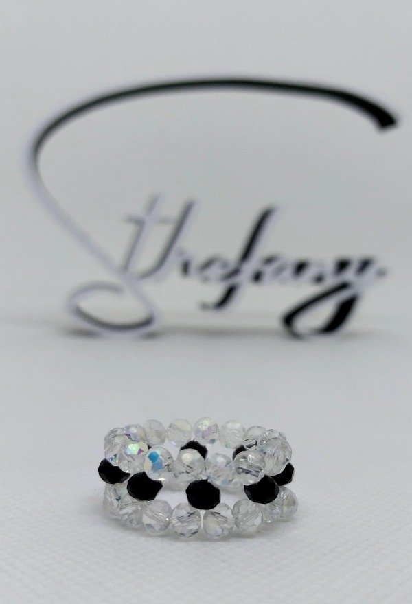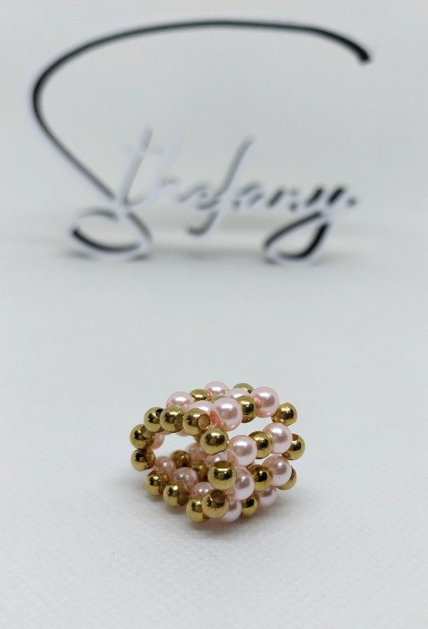 Anillo elastizado realizado con cristales checos y perlas.consultar stock disponible en colores y talles.
