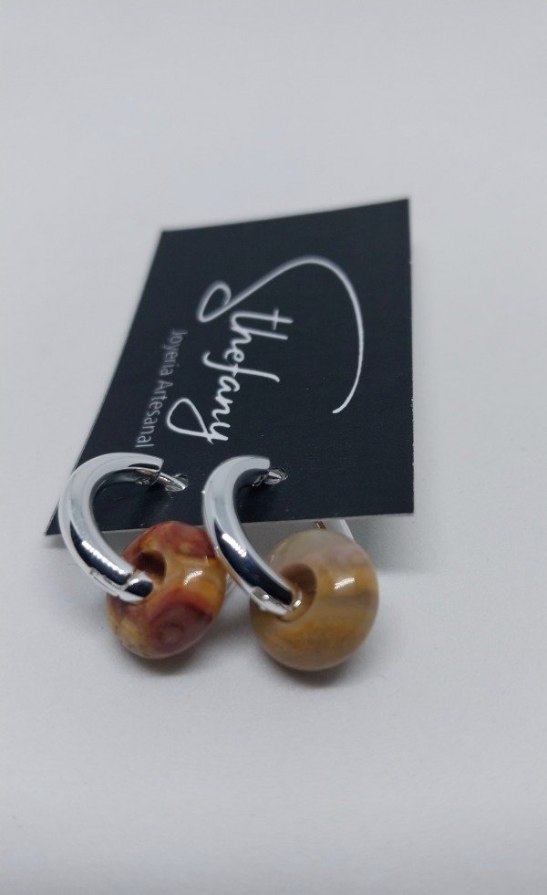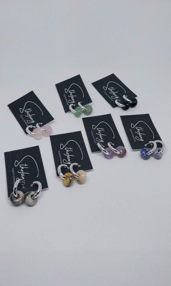 Para de aros argolla de acero blanco de 15mm con dona de piedra natural (amatista,amazonita,cuarzo rosa,cuarzo verde,onix,labradorita) al finalizar la compra especificar el elegido.