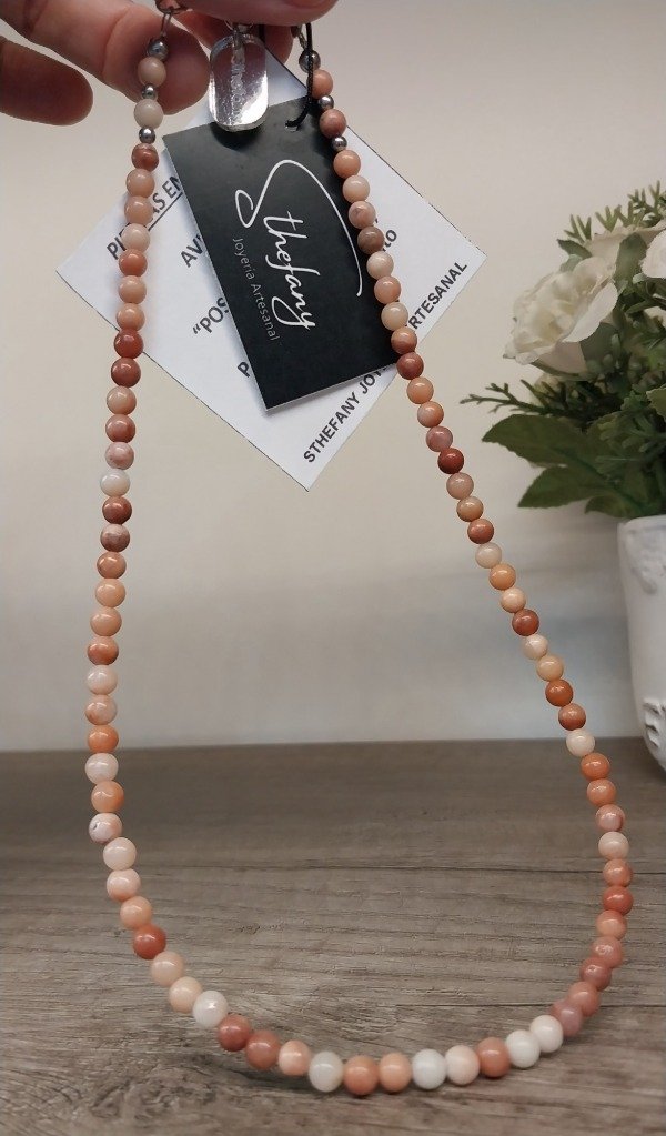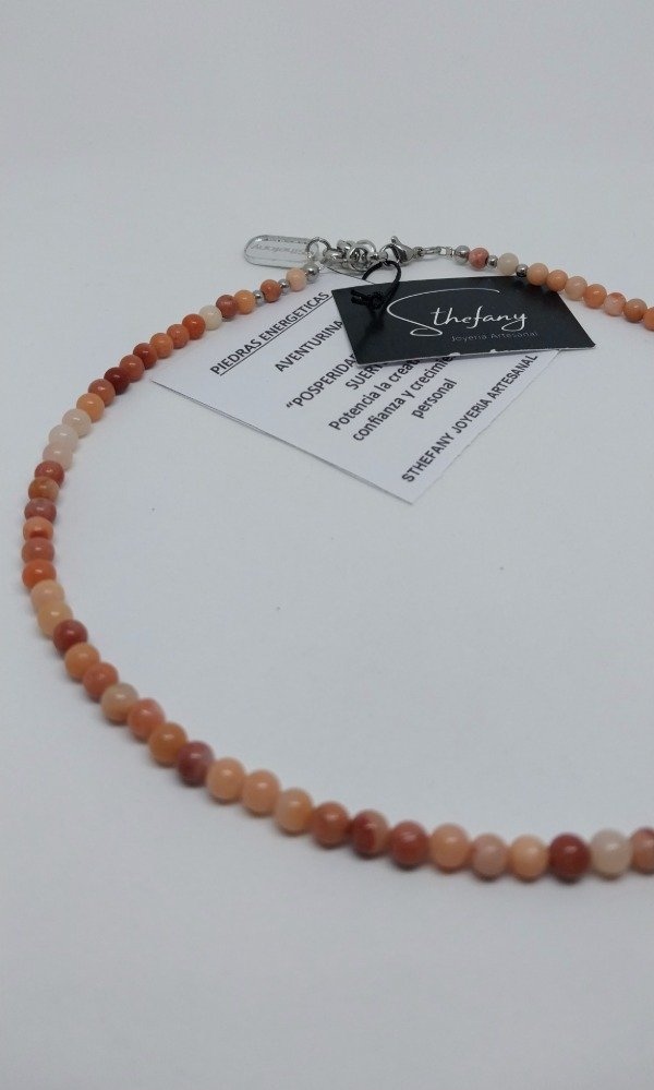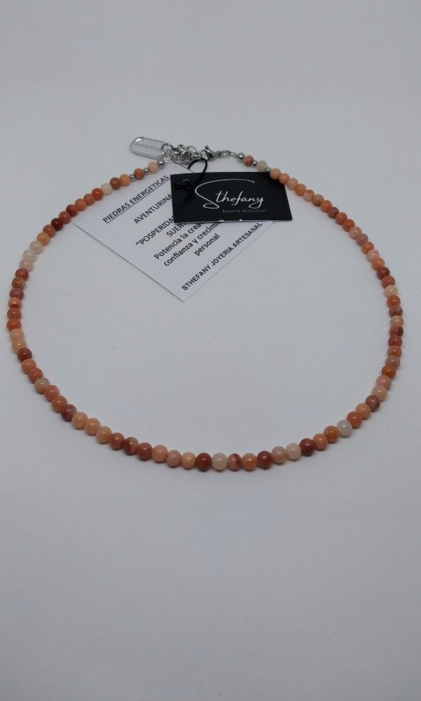 Collar realizado en acero quirúrgico hipoalergenico y piedras naturales aventurina de 4mm tamaño mediano.mide aprox 38cm de largo más cadenita de alargue.