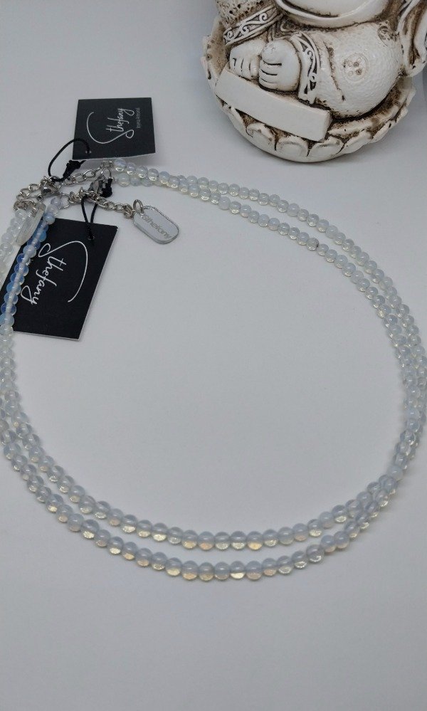 Collar realizado en piedras minerales naturales OPALINA vidrio de 4mm.Mide 38 cm d largo más cadenita de alargue de acero quirúrgico hipoalergenico.