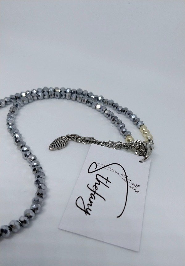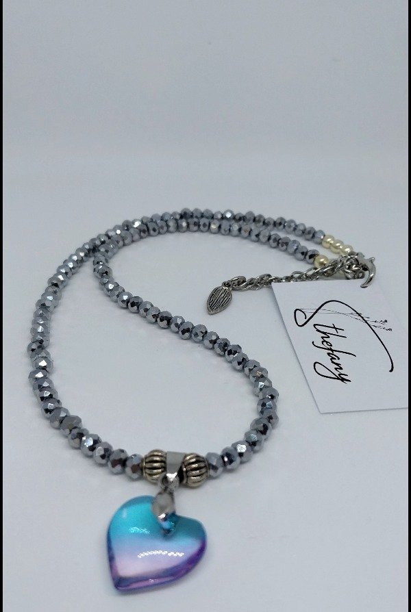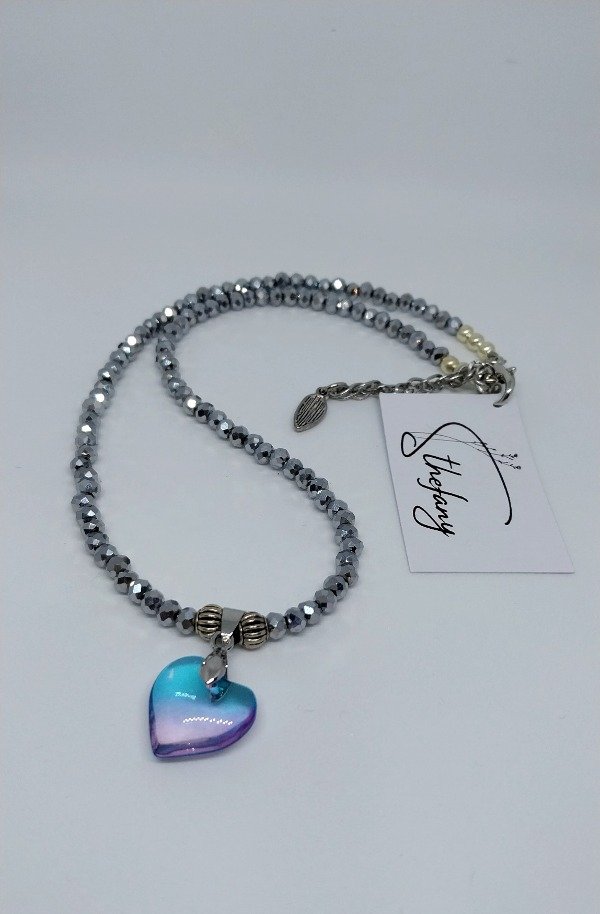 Collar realizado en cristal de roca plata,y dije cristal celeste tornasolado.