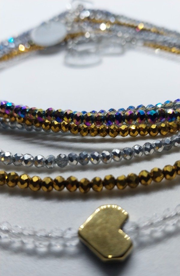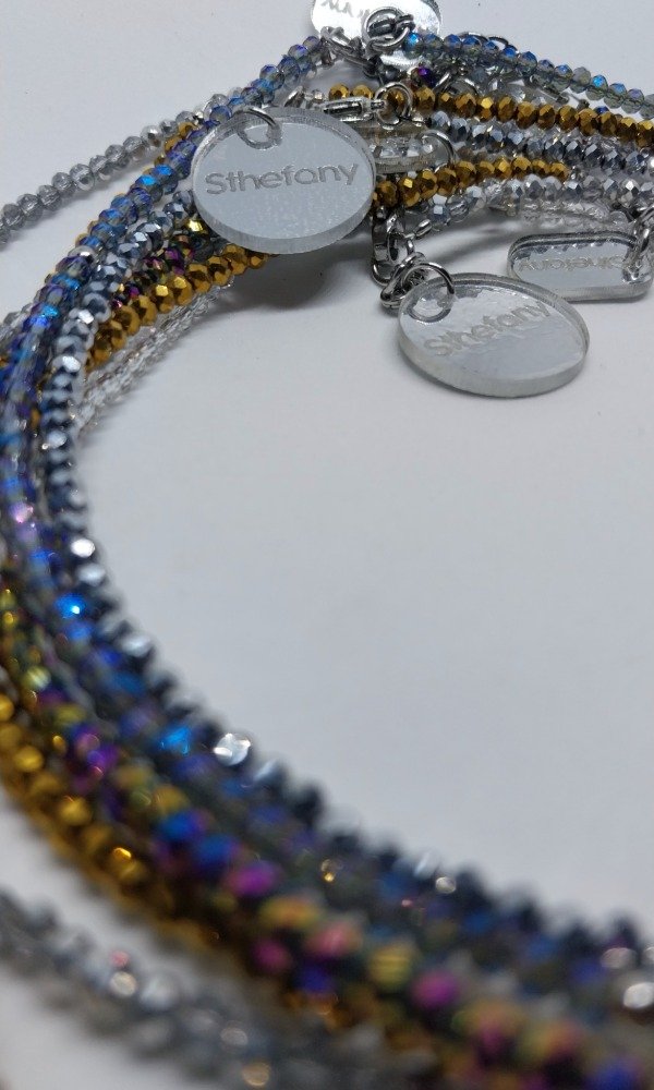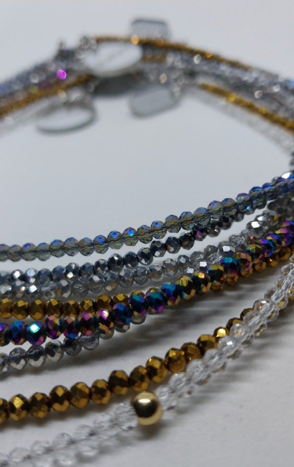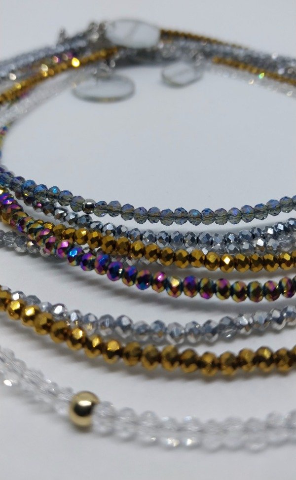 Collares realizados en microcristales de 2mm y acero quirúrgico hipoalergenico con cierre,cuentas y cadenita de alargue de acero. Consulta stock disponible